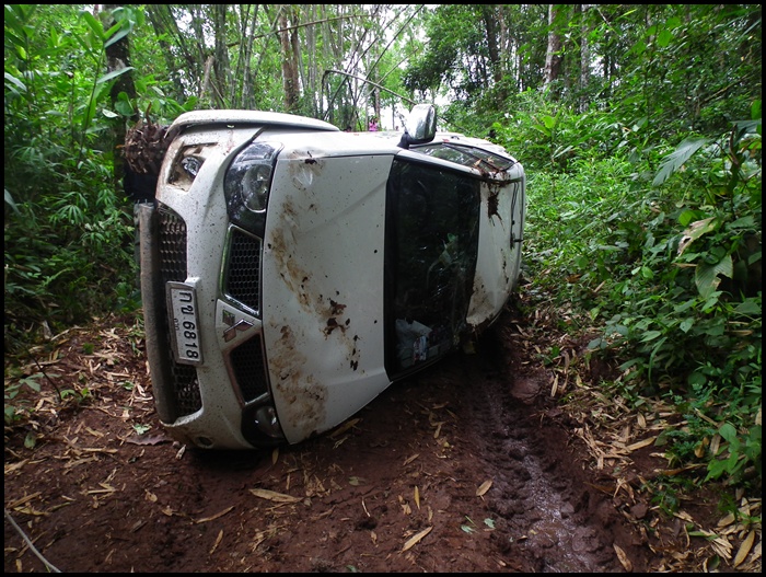 ไม่ทันไปถึงใหนเลย พอเจอป้ายก็เจอเลย รถ ผกก.แม่ท้อ เดิม ๆจมมิด ดึงหน้าดึงหลังไม่ยอมขึ้น