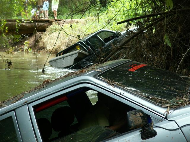 ไม่มีใครถอย..แบ่งกันทำสะพาน และกู้รถที่จมน้ำ..