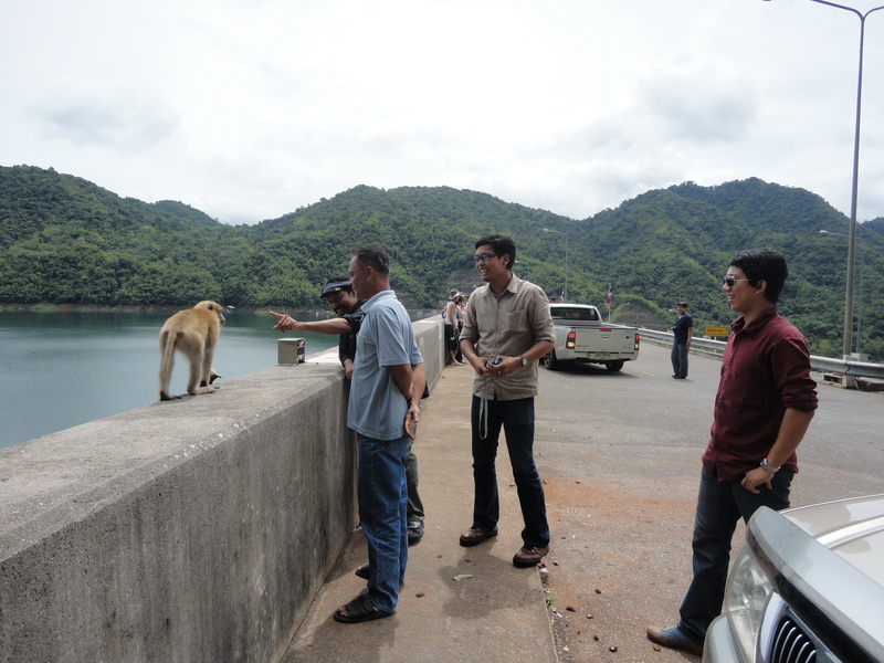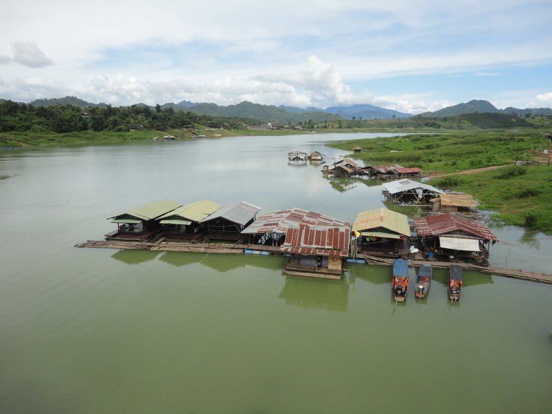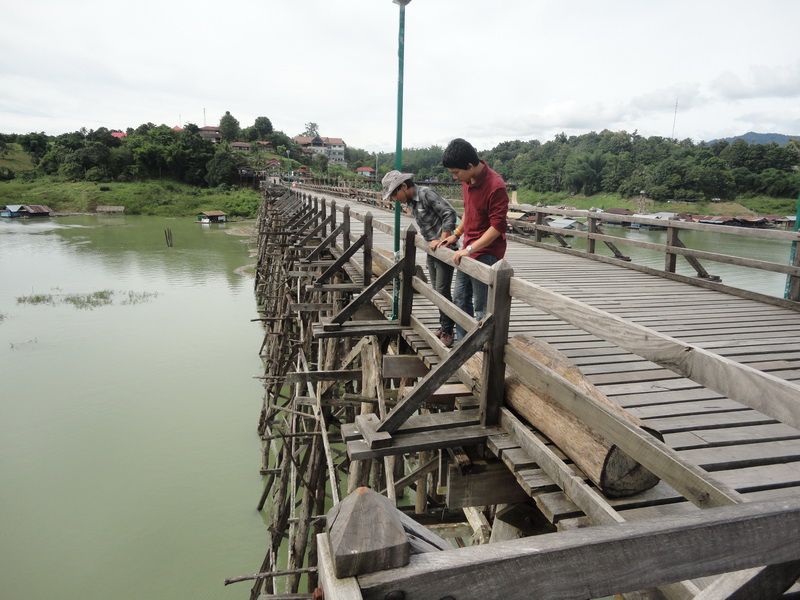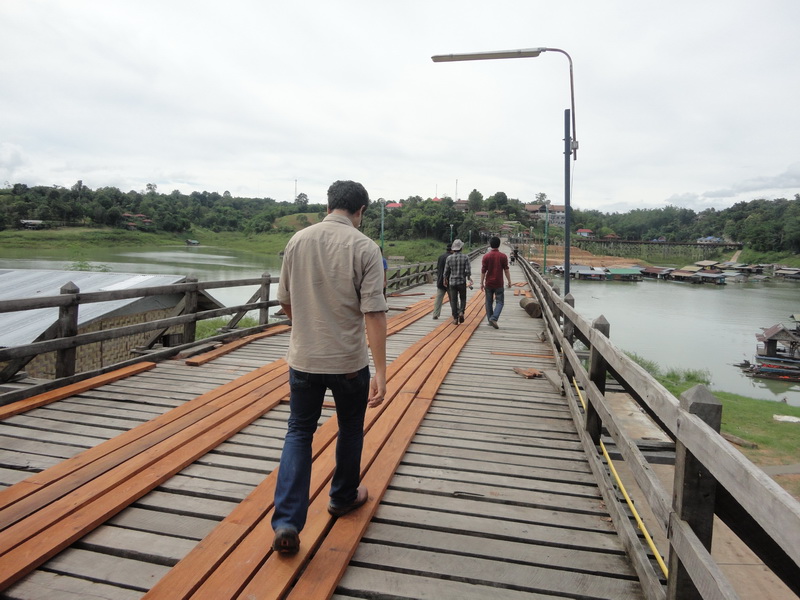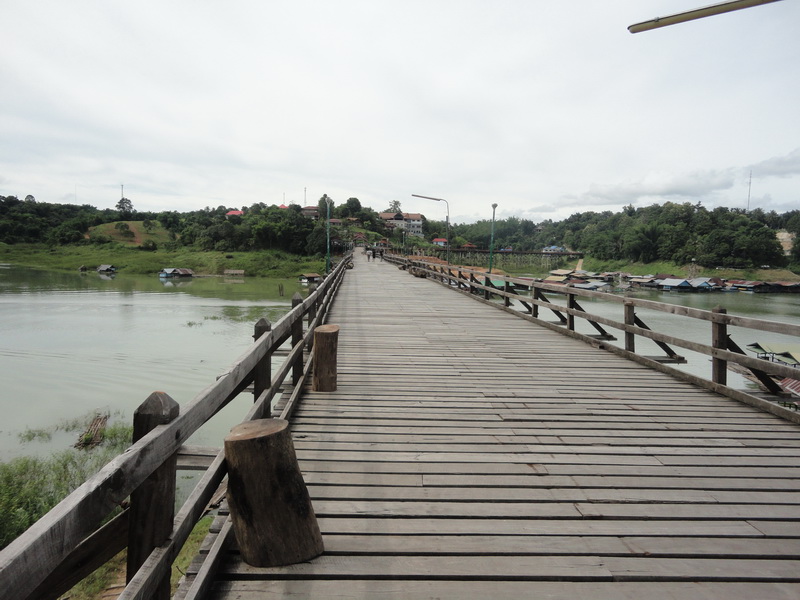 เดินข้ามลำน้ำซองกาเรีย ซึ่งจะเดินข้ามไปยังชุมชนชาวมอญ สะพานยาว 850 เมตร