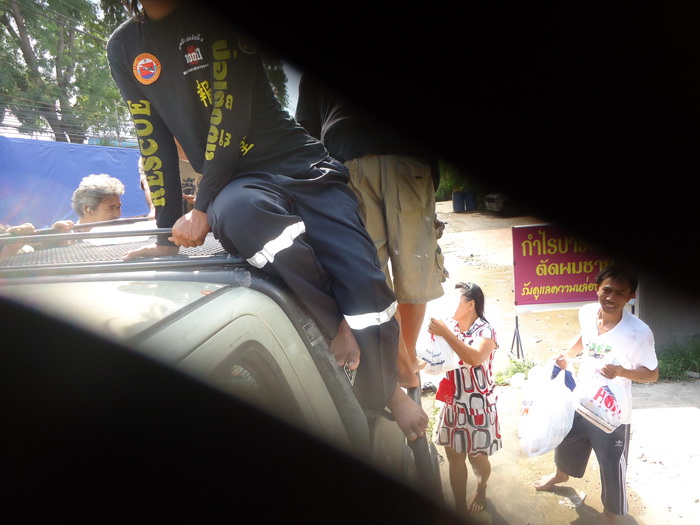 ลุงบอข้างในยังมีคนอีกเยอะที่ยังไม่ได้กินข้าว ผมบอกว่าเดี๋ยวจะเข้ามาอีกรอบ ถ้าได้ยินเสียงเเตรลมให้ออกมารับของกันไดเลย
