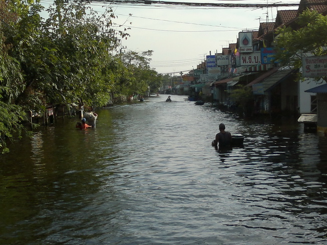 ในซอยน้ำท่วมสูงอยู่บางช่วงครับ