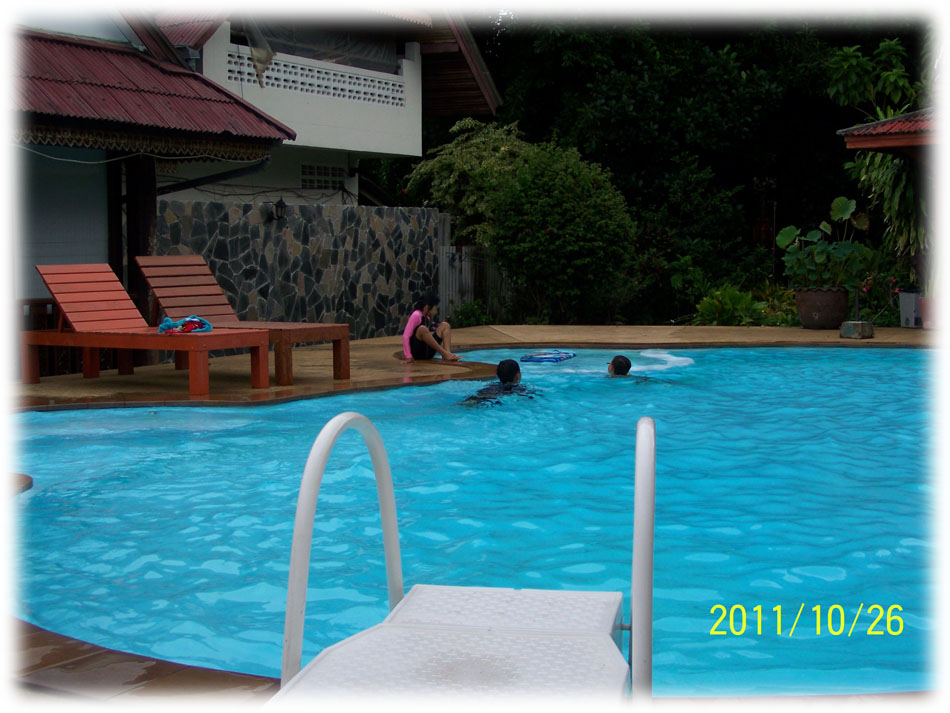 เลยไปหาที่พักที่พอจะมีสระน้ำให้เด็กๆได้แช่น้ำ