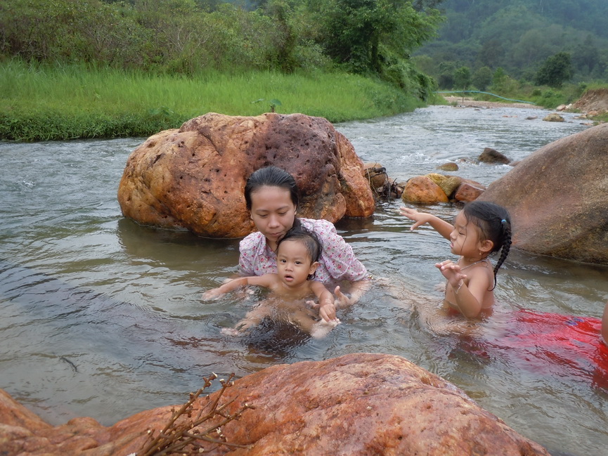 ลงไปแช่คลายร้อน นํ้าใสๆและเย็นๆ