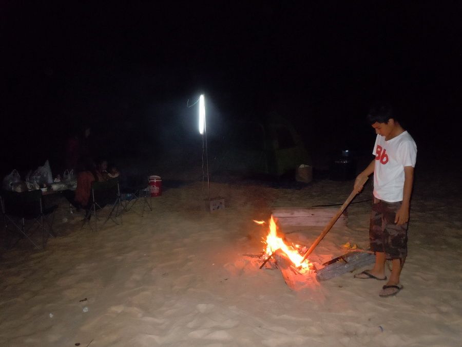 ก่อไฟ พร้อมกับตั้งโต๊ะตั้งวง