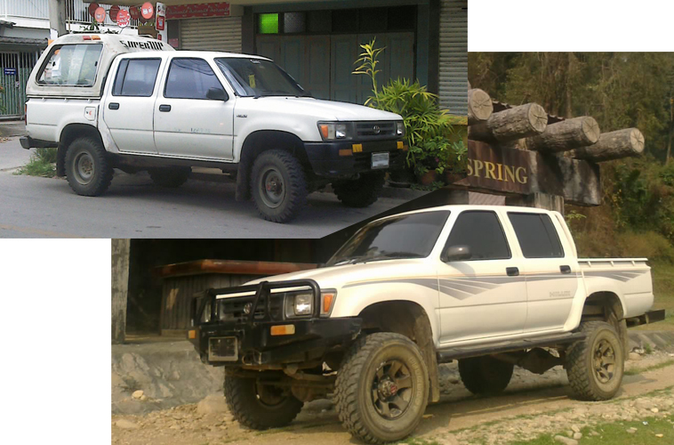 -อยากบอกท่านอื่นๆที่หาข้อมูลบ้างว่า สำหรับผมเอง รถ 4ป.ท้ายบรรทุก เป็นรถเอนกประสงค์ที่ชอบมากกว่าแบบอื่น และรถ106ก็ลงตัวในแบบบอดี้นี้มาก แต่ภาษี รย.1 เป็นภาระมากกว่าเช่นกัน และเมื่อแต่งล้อโตให้ดูสวย ค่าน้ำมัน/กำลังเครื่อง/ภาษี จะขัดแย้งกันหรือมีเงื่อนไข... เช่นค่ายางแพงและตัวเลือกน้อย กำลังเครื่องเพื่อรองรับล้อโตยิ่งมากภาษียิ่งแพง.....