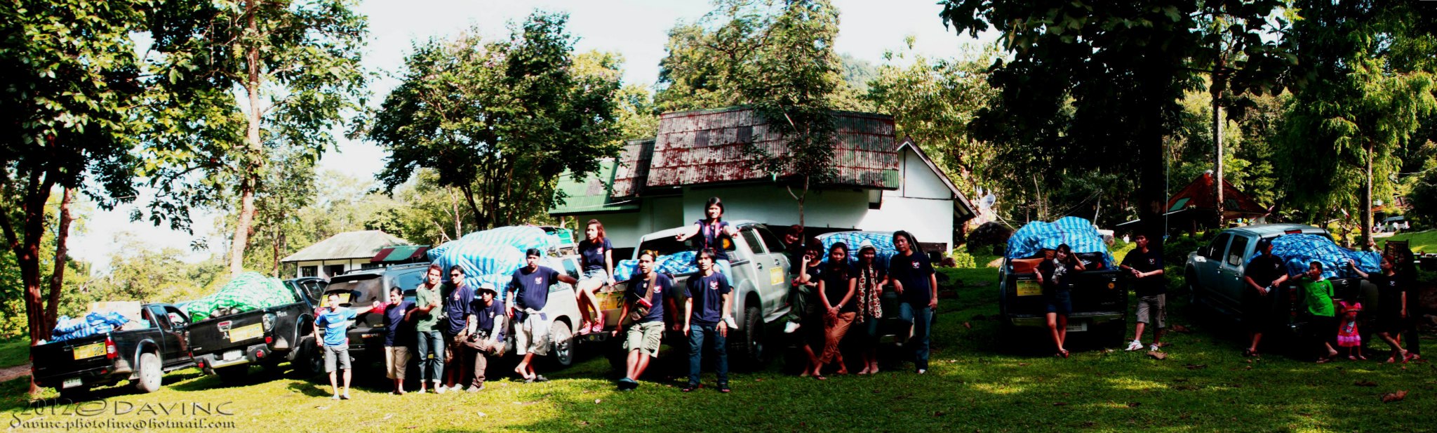 ชาวบ้านมาส่งลูกหลานรับของจากทีมงานที่มาถึงก่อนหน้าทีมเรา