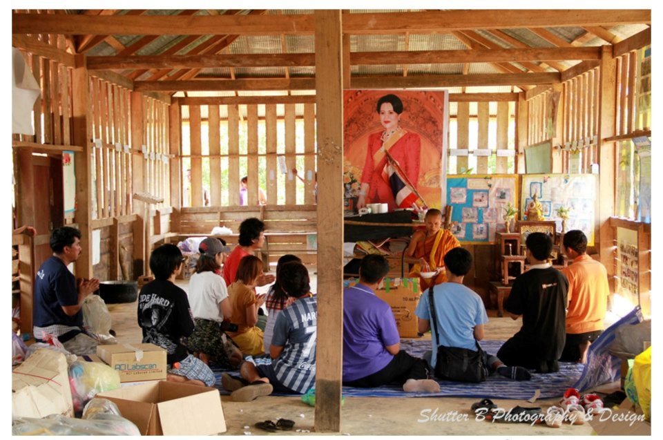 ถวายสังฆทานแก่พระของชาวกะเหรี่ยง ท่านนับถือพุทธเช่นกัน ออกบวชมาตั้งแต่เด็ก ท่านตาบอด แต่อาศัยการท่องจำบทสวดจากพระที่อาศัยอยู่ที่สำนักสงฆ์ด้วยกัน