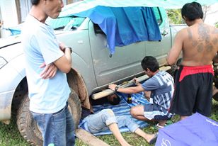 เช้ามาแบ่งทีมงานเป็นสามกลุ่ม ทีมแรกซ่อมรถ ทีมที่สองทำกับข้าวเพื่อเลี้ยงอาหารเด็กๆ ทีมที่สามจัดเตรียมของเพื่อแจกจ่าย