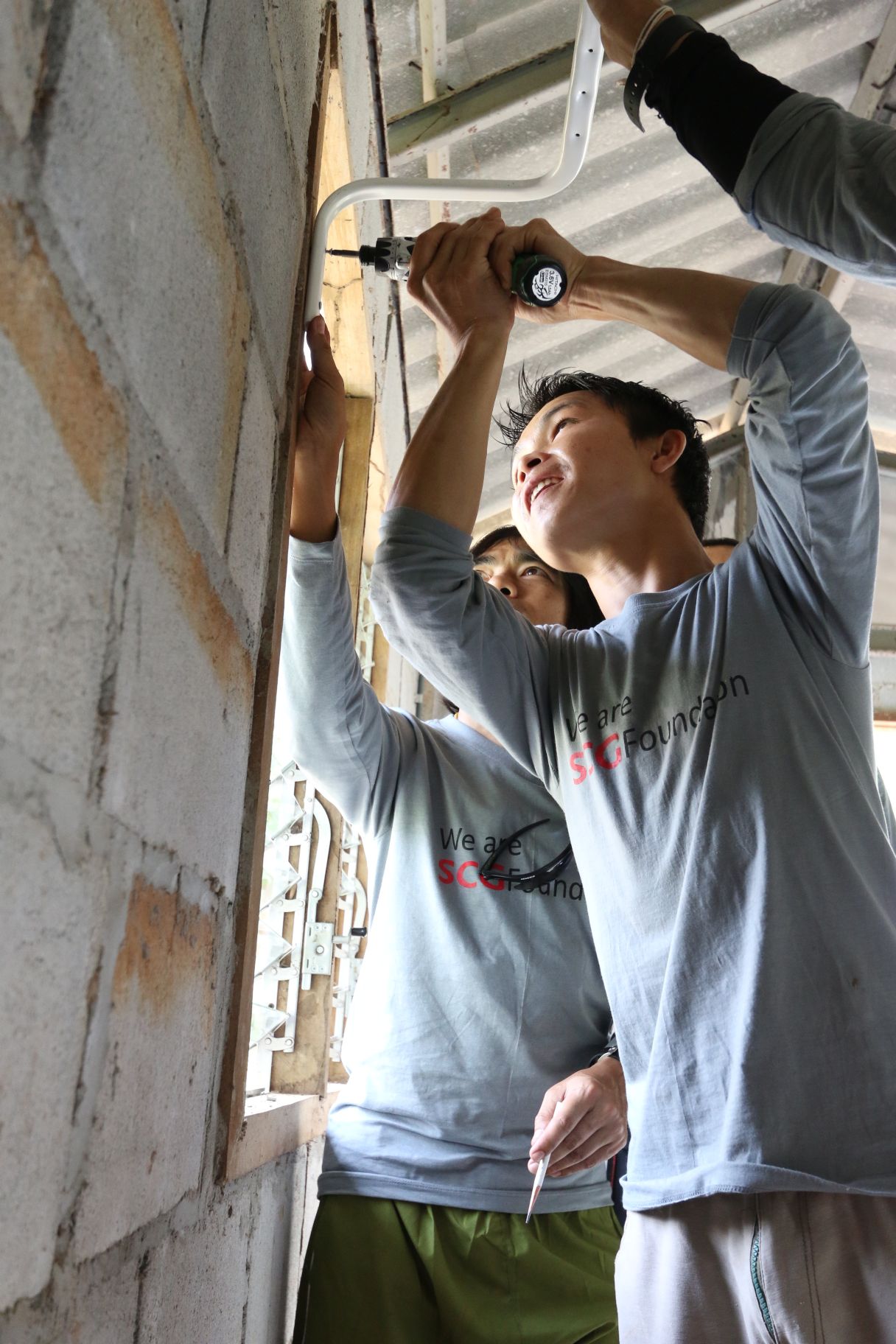 น้องตี๋ติดตั้งราวแขวนผ้าให้น้องๆ