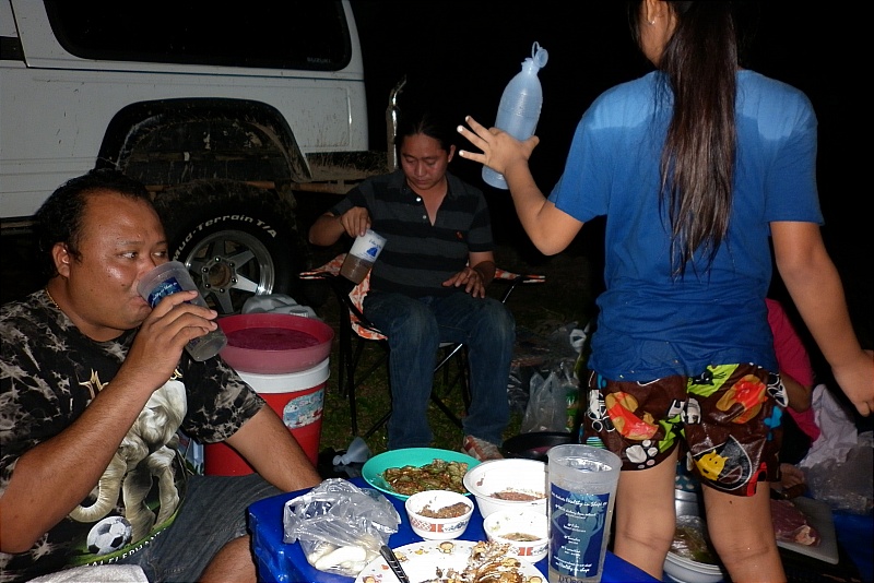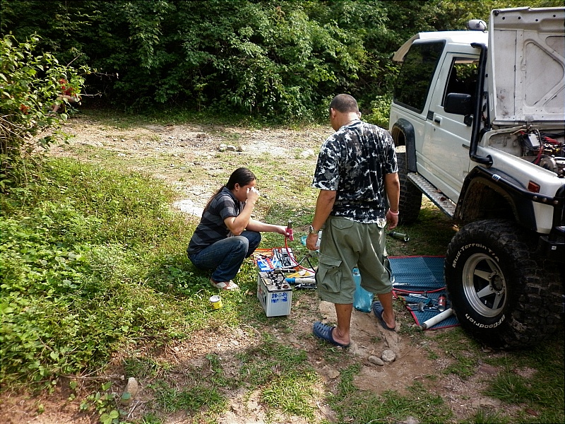 น้องเด่น ดาว และรอบครัวตามมาตอนดึกเข้ามาช่วยซ่อมมารขาวครับ นั้งดื่มอยู่มองไปใต้ท้องรถ อ้าวทำไมรถเราโช๊คหน้าขวามันห้อยอย่างนั้นล่ะ(สลักหูโช๊คมันหัก)ไม่รู้เนินไหนทำพิษ และได้ติดต่อเพื่อนที่ กทม.ที่กำลังเดินทางผ่านมาทางมวกเหล็กหาอะไหล่มาให้ถึงตอนสี่ทุ่มกว่า ต้องขอบคุณ คุณเปเร็ตและครอบครัวไว้ณ โอกาสนี้ด้วยครับ