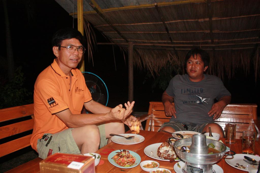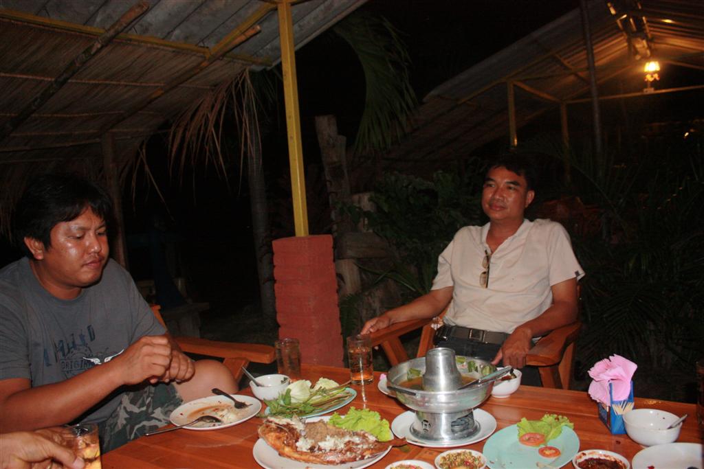 ตอนกลางคืนเขาว่าจะขี่เรือออกไปหาปลาให้กินด้วยการใช้ตะเกียงส่องแล้วใช้ฉหมวกแทงแต่พอหมดกล่องดำไปสองกล่องทั้งคนพายคนแทงขอบายไม่ออกครับอยู่บนฝั่งดีกว่า......เอ้าคือว่าแบบนี้ละ