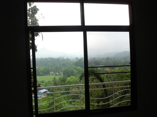 จากภายในศาลาลอดหน้าต่างออกไปยังข้างล่าง
