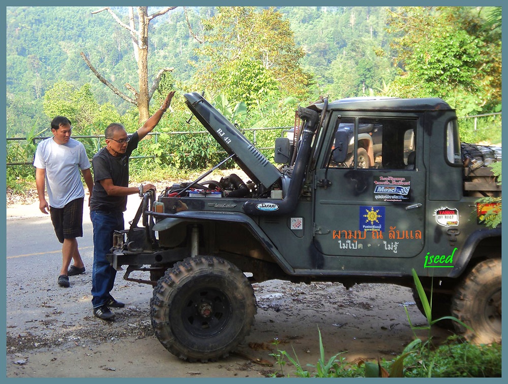คันนี้สวยงาม แบบดิบๆๆ BJ-43 ของพี่วัฒ อุดดิต ช่วงแรกๆๆ มีปัญหา รถไม่มีแรง ควันดำ จอดหลายครั้ง พี่เค้าเพิ่งวางเครื่องใหม่ หาจุดบอดไม่พบ คันหน้า5Lของเจ้าภาพที่พักและมิตรภาพมากมาย ท่านอำนาจ เจ้าของสวนทุเรียน ผามูบ