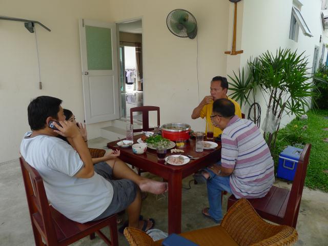 แขกผู้มาเยือนกำลังชิมอาหารเหลาอยู่ ไม่ต้องอธิบายดูท่าทางแต่ละท่านคงพอ