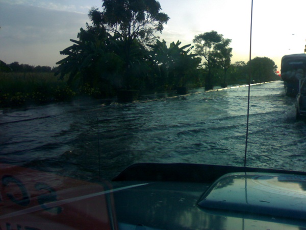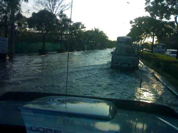ตอนนี้ที่บ้านของกระผมน้ำเริ่มเอ่อขึ้นท่วมถนนหน้าบ้านแล้วครับ ตามซอยในหมู่บ้านที่อยู่ถัดจากซอยบ้านผมเข้าไปท่วมมากกว่าครับ เพราะต่ำกว่า