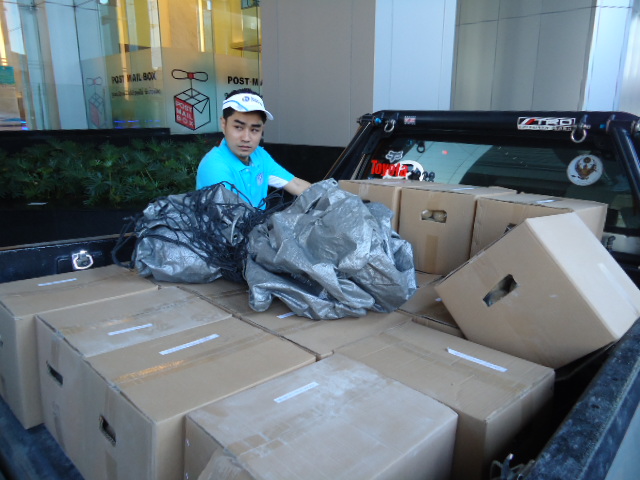 จัดขบวนรถขนถุงยังชีพและอื่นๆที่ สงญ ธ.เกียรตินาคิน แยกอโศกก่อนออกเดินทาง