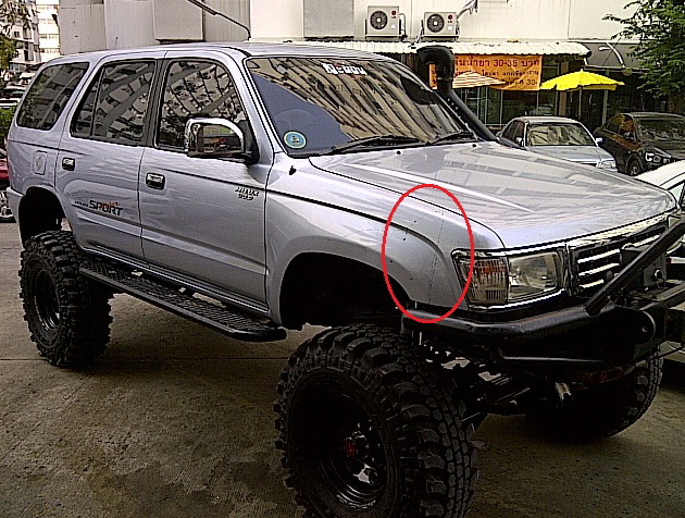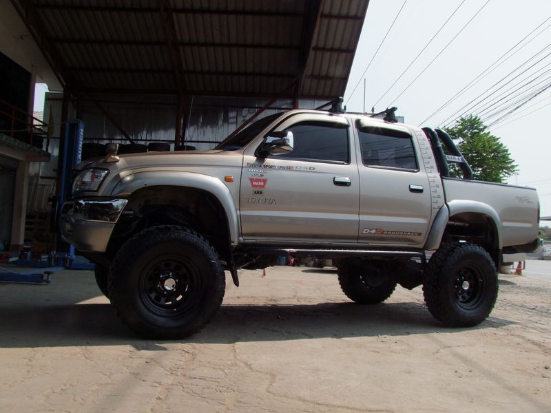 หรือถ้าจะเอาดิบๆ ประหยัดงบสุดๆ แบบที่เคยทำให้อิป๊อดฯเพื่อนผม เพื่อใส่ยาง 245/75/16 + แมก 16x8 ออฟ+0 ข้างหน้าไขทอชั่นบาร์ขึ้นสุดร่วมๆ 2" (ยังเลี้ยวติดอยู่บ้างในบางจังหวะ) ข้างหลังโตงเตง 7" คู่เดียวจบ ไม่โผล่ชายกันชนให้เกะกะลูกตา ส่วนโช้ค จข.เดิมเค้าใส่ Westcost กระบอกฟ้ามาอยู่แล้วยังพอได้อยู่ เลยไม่ได้เปลี่ยน คันนี้ลงทุนยกช่วงล่างรวมตั้ง0 แค่ 700-800 บาท...คิดดู.....