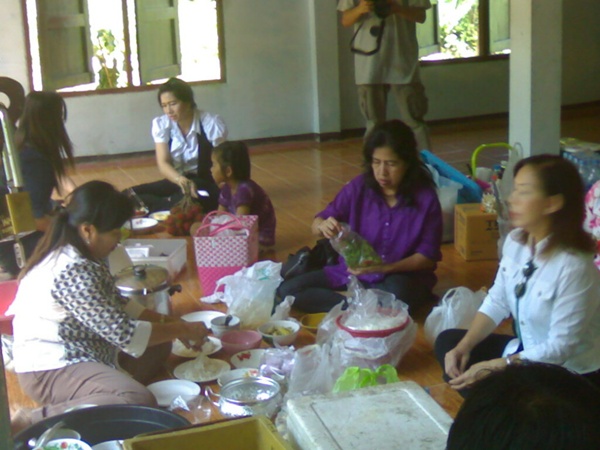 เตรียมอาหารถวายเพลพระโดยกลุ่มแม่บ้านทั้ง 2 ค่าย