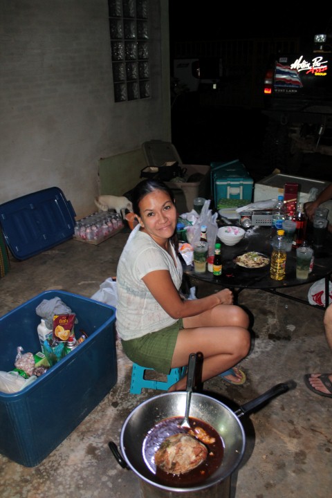 ฝนรินๆเลยอาศัยซุ้มน้าแหลมตรงปากทางนั่นแหล่ะหลบฝนแล้วตั้งวงกินกลางวันกัน