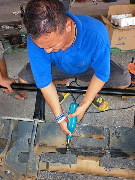 เอาแผ่นเหล็กที่เจาะรูแล้วลองประกอบกับฐานวิ้นช์ดูพอดีเป๊ะ