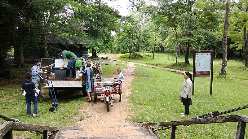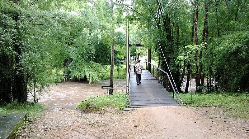 ทริปนี้น้ำในห้วยสูงสองเมตรกว่ารถของเราไม่สามารถข้ามได้ตองขนสัมภาระข้ามสะพานแขวนขึ้นรถเจ้าหน้าที่เข้าไป ทริปนี้ 2คัน 3 คน(ผมกับน้าหนอมและพี่ต่าย อารีย์ น้องปีเตอร์