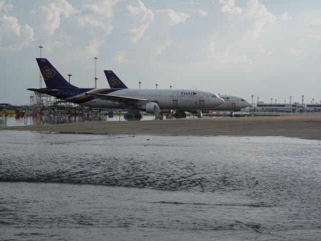 บ่ายวันนี้ กองทัพน้ำกำลังทะลวงเข้าสนามบินดอนเมือง ทางด้านทิศเหนือแล้ว สองลำนี้ก็คงไม่รอด เคลื่อนย้ายไม่ได้จอดรอซ่อมอยู่