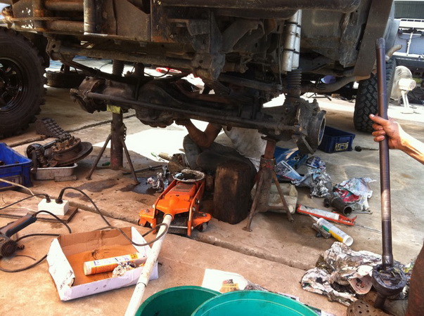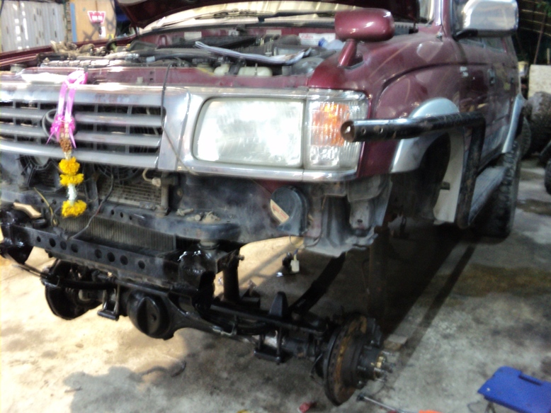 สวัสดีพี่ๆทุกท่านครับ พอดีวันนี้ติดภาระกิจบูรณะรถครับพี่เอเลยไม่ได้ไปช่วยครับ หลังจาก ลงไปเเช่น้ำ3รอบใหญ่ๆ พี่ๆท่านใดหลังจากเเช่น้ำเเล้วระวังกันด้วยล่ะครับ วันนี้ของน้องจัดชุดใหญ่ไปเนื่องจากน้ำเข้า ทางท่อหายใจ ทะลักออกซิลเพลาหน้า ตอนเเรกว่าจะเปลี่ยนเเค่ซิลไม่ไว้วางใจ เลยจัดการรื้อคาน ชักเเขนเพลา2ข้าง + เฟืองมาตรวจสอบ คับน้ำออกมาเพียบ เลยถือโอกาศล้างใส่คาน+เปลี่ยนซิล ทั้งหมดเลยครับ พร้อมเปลี่ยนน้ำมันเกียร์หลัก+สโล+เฟืองหน้า-หลัง