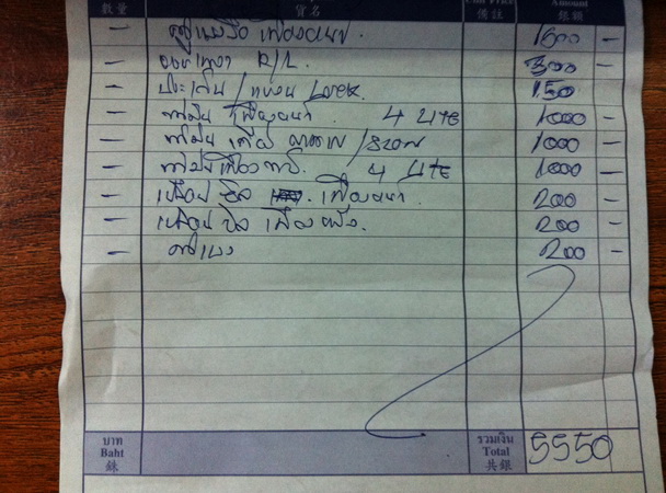 เลขบิลออกมาสวยเลยครับ ตัวเบากันเลยทีเดียว ผลของการดำน้ำ 555