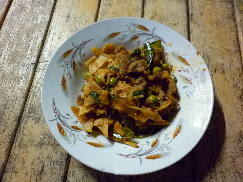 เนื้อสันผัดพริกแกงกับหน่อไม้ดอง