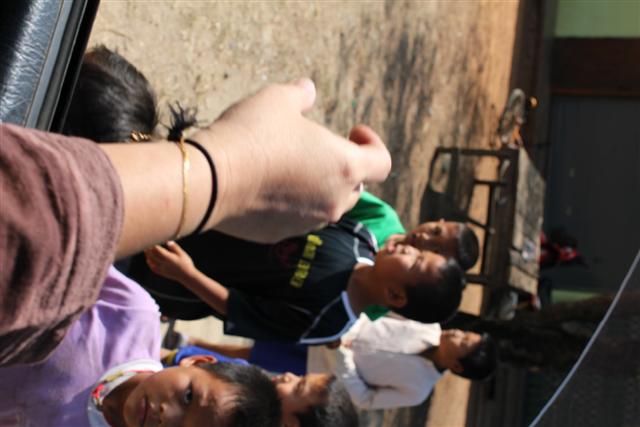 ระหว่างทงเราไม่ลืมกิจกรรมเสริมสร้างควมดี แจกขนมเล็กๆน้อยๆให้เด็ก