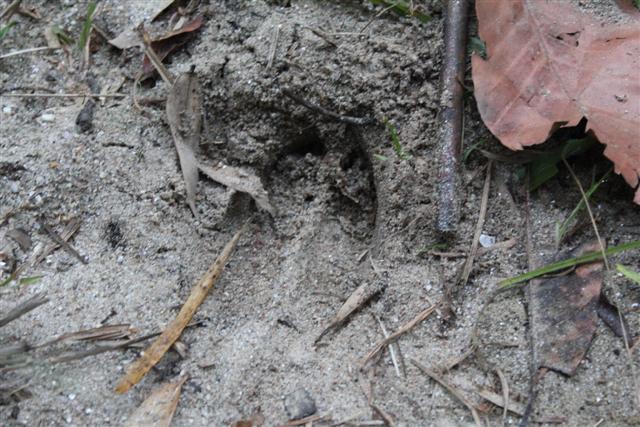 รอยเท้ากวางขนาดไม่เล็ก ที่ริมห้วย ถ่ายในตอนเช้าขณะที่เมื่อคืนพวกเขาข้ามห้วยมากินดินโป่งกัน