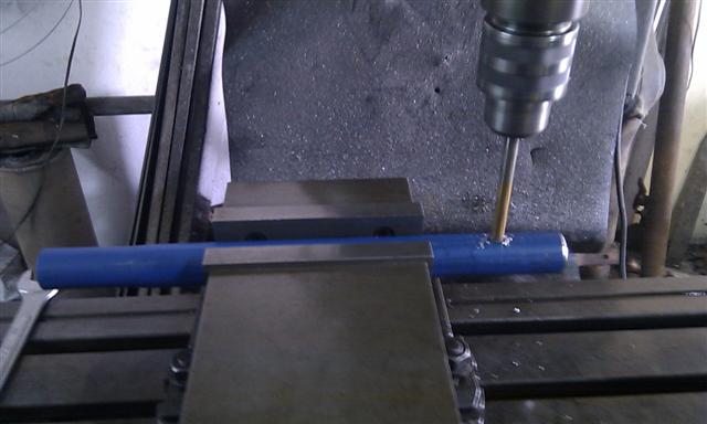 หน้าตาออกมา เป็นแบบนี้ครับ อัดด้วยเหล็กตัน ตามระยะที่เจาะเผื่อด้วยนะครับ ให้ยาวสัก นิ้ว จากนั้น เชื่อมที่รู และ ลอย ต้องเว้นระยะด้วยนะครับเพื่อให้เนื้อเหล็กตันติดกับแป๊บ