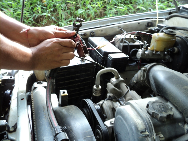 ให้หาประแจปากตายเบอร์ 10 หรือ 12 แล้วแต่น็อต สกรูที่ไขไว้ขั้วแบ็ตเดอรรี่