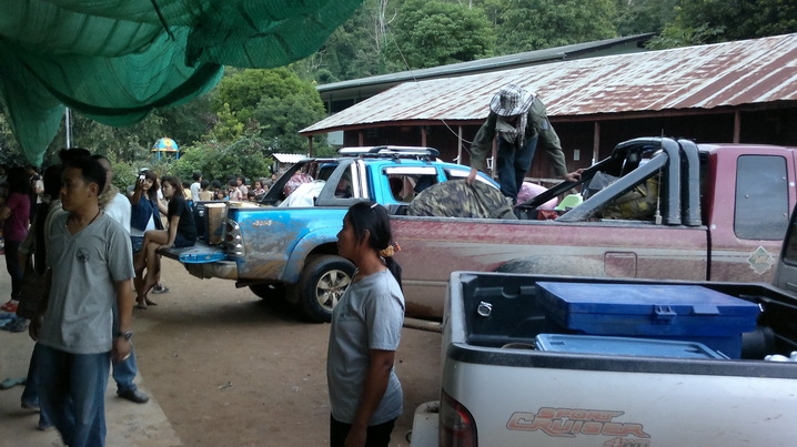 หลังจากนั้นก็ทำการขนถ่ายสัมภาระทั้งหลายจากตัวแรงทั้ง2คันเพราะจากนี้ไปขับสองจะไปไม่ไเป็นแล้ว