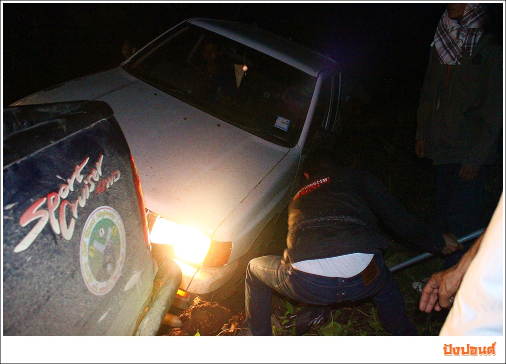 ไม่ไหวๆ ล้อติดลงไปในร่องดินลึกพอสมควรเลย