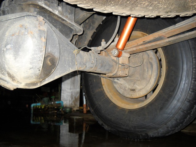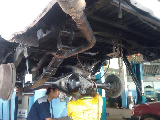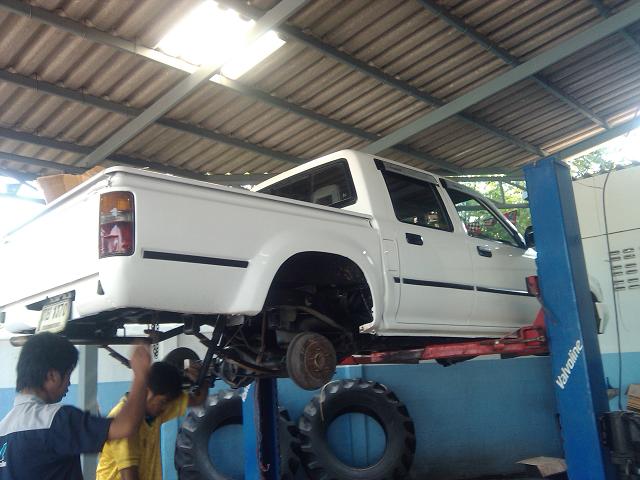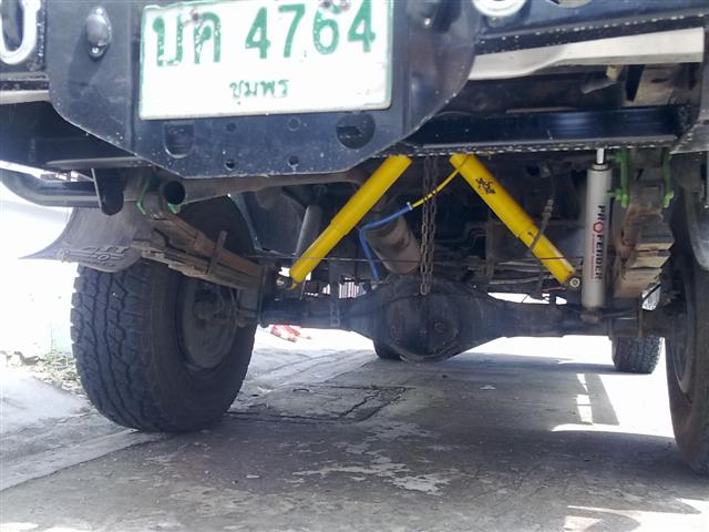 มาดูด้านหลังกันบ้าง ในชุดยกจะมีชุดเทินร์เพลาหลังและตัวต่อเพลากลาง และที่เห็นก็จะมีแหนบadd และโช็คแก็สคายาบ้าสีทองเข้าชุดกับด้านหน้า สูงกำลังสวย ใช้ยาง31" เข้าที่จอดรถห้างสบาย ไม่กินน้ำมัน วิ่งได้ดี ลืมบอกรถผมเครื่องKZ ชนเกียร์เดิม2L เฟื่องท้าย4.3