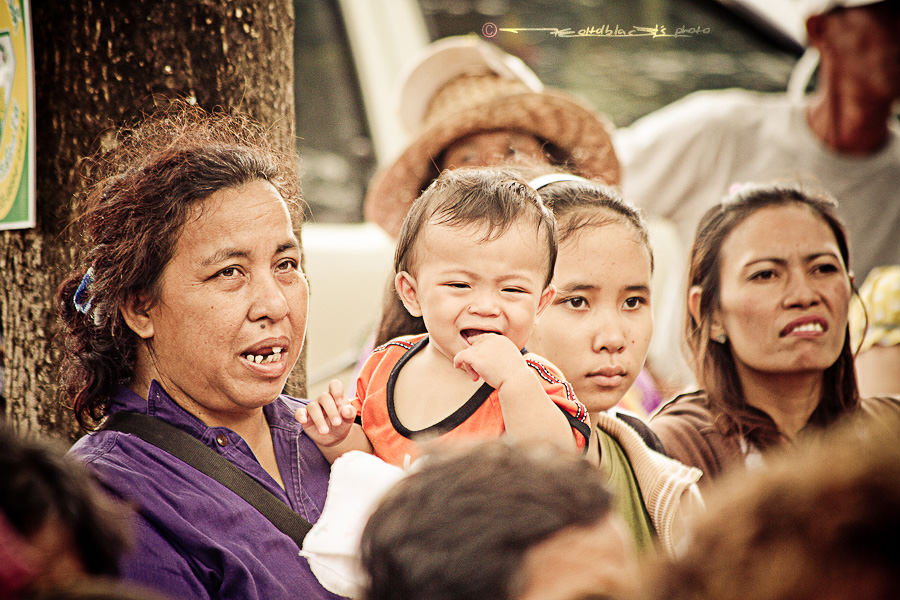 คุณพ่อพาลูกน้อยมารอสิ่งของบริจาค