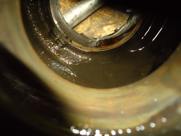 ในดุมลูกปืนตับในตับนอกไม่มีจารบีสักนิด มีเเต่น้ำเหนียวๆๆอยู่นิดหน่อย โชคยังดีที่ล้อไม่หลุดก่อน