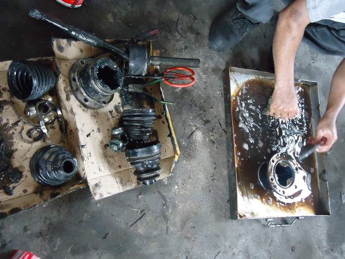 เพลาเสียทั้ง2ข้าง เอามายำรวมกันให้ใช้ได้1ข้าง เพื่อเจ้าของรถจะได้ประหยัดลง