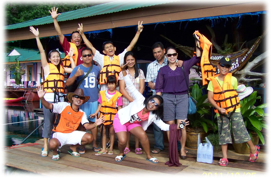ถ่ายรูปหน้าแพ ก่อนลงเรือเที่ยวในเขื่อนฯ