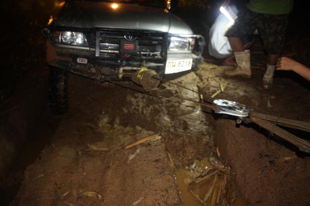 กว่าคันแรกจะผ่านร่องนี้ได้ ก็ประมาณสี่ทุ่ม เกียยังอยู่กลางร่อง คันหลังสุดยังไม่ได้ลง เดินไปดูไลน์ข้างหน้าแล้วอีกหลายเหนื่อย