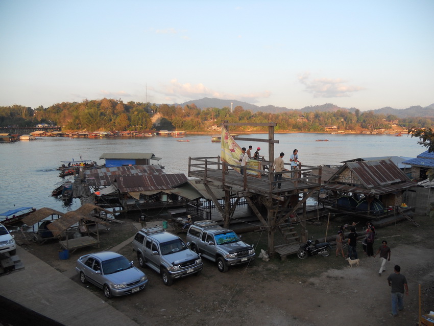 ในรูปสะพานมอญอยู่ทางขวามือแสงขาวๆนั้นแหละครับ หมูบ้านมอญอยู่ทางซ้ายบนเนิน