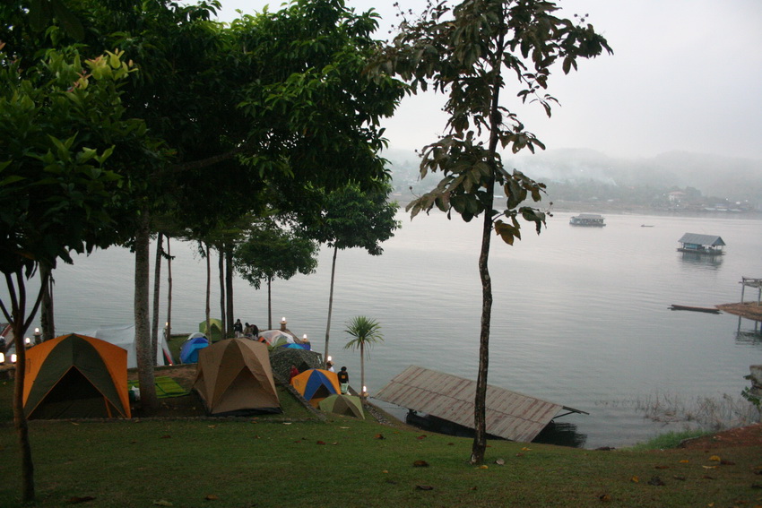 ข้างล่างถัดไป มีเต้นท์อยู่หลายหลัง