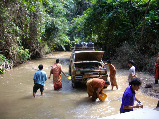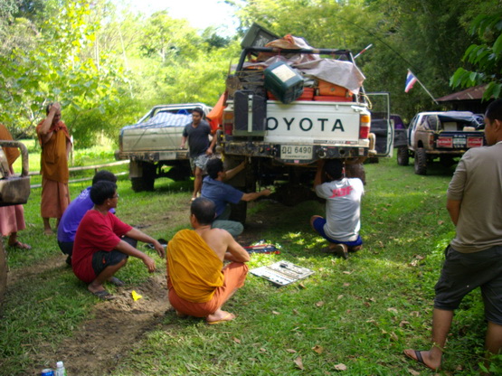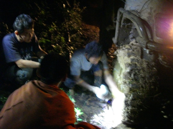 ก่อนถึงวัดกะทะล้อของเพื่อนกระแทกกับหินดุ้งยางรั่วแต่ คุณพระช่วยซ่อมใช้ค้อนตีแล้วเติมลมไม่รั่วก็ไปต่อมืดอีกแล้วไฟหน้าต้องลงมาเอาน้ำล้างตลอดทาง โคลนมันเปื้อนมองไม่ค่อยเห็น