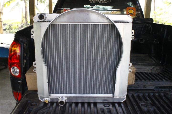 งานนี้ชักเริ่มมันส์แล้ว เปลื่ยนหม้อน้ำด้วยดีกว่าเป็นอลูมิเนียมใหญ่ๆเข้าไปแทนที่เดิม+เปลื่ยนหม้อลมเบรค2ชั้นใหญ่ๆซะใจไปเลย และติดแตรลม2ปากไว้บีบแข่งกะสิบล้อแถวบ้าน