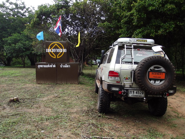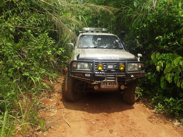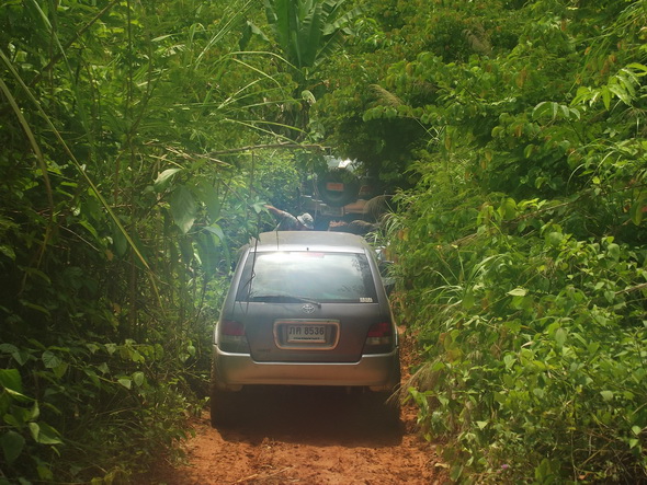 ตอนนี้จอดรอพี่ป้อม เพราะพี่เขาหลบกิ่งไม้เลยติดอยู่พักนึง แต่ก็ผ่านได้ ถ้าเราเข้าช้ากกว่านี้อาจต้องวิ้นซ์ เพราะฝนตก อิอิอิ