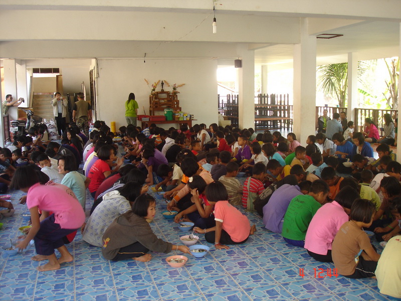 ถ่ายรูปหมู่ร่วมกัน แล้วคูณแม่ผมกับคณะได้มอบเงินค่าอาหารให้เด็กๆอีก 5,000 บาท