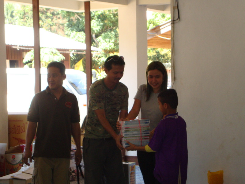 คุณโจ คุณน้องเป็นตัวแทนมอบสมุดให้กับนักเรียน