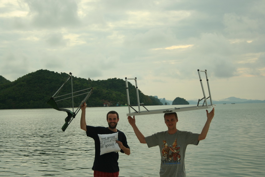 แล้วเราก็เกณฑ์แรงงานฝรั่ง ให้ขนโต๊ะเก้าอี้ไปที่ปลายแหลม