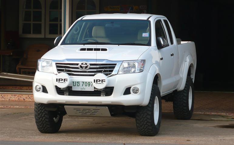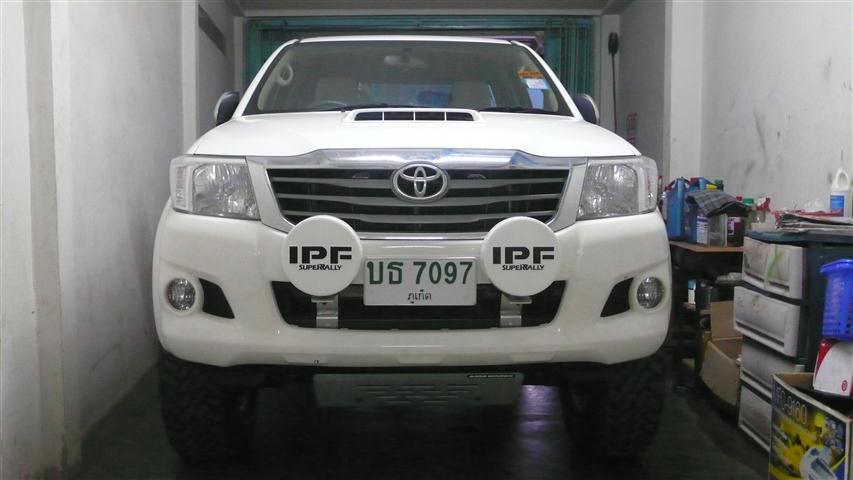 เรื่องขายึดสปอร์ตไลท์เดี๋ยวผมขออธิบายหน่อยครับ เนื่องจากวีโก้แชมป์เป็นไมเนอร์เชนที่ทำการต่อหน้าให้ยื่นออกมาจากตัวยึดหน้าปี2007 ทำให้จุดยึดหาค่อนข้างยากมากๆ และถ้าหาจุดยึดได้ก็เหล็กบางไปเอาไม่อยู่ครับ จะยึดกับแผงหน้าหม้อน้ำค่อนข้างยากและไม่แข็งแรงครับ โดยส่วนตัวสปอร์ตไลท์ที่ผมใส่อยู่ipf9301น้ำหนักค่อนข้างมาก มากกว่าlight force เยอะเลย ถ้าlight force น่าจะทำขายึดกับคานหน้าหม้อน้ำได้ครับ แต่ของผมน้ำหนักมันเยอะ และถ้าเอาแผงหน้าหม้อน้ำยึดขา ช่วงมันยาวเกินไป คงเอาไม่อยู่แน่นอน ผมเลยทำเหล็กตัวc สวมคานขวางหน้าแชสซีกว้างสองนิ้วครึ่งเจาะรูยึดเบอร์17ขาละรู เอาอยู่ครับจากนั้นต่อขาเชื่อมกับเหล็กตัวc เชื่อมออกมา ช่วงสั้น ไม่ยาว เอาอยู่ครับ ผมสร้างแบบขึ้นมาหนึ่งอันครับ แล้วส่ง ร้านextream gurdให้เค้าทำให้ แบบผมยังมีอยู่ เดี๋ยวผมจะถ่ายรูปแล้วลงรายละเอียดให้ดูอีกทีนะครับ ขอบคุณครับที่สนใจ
